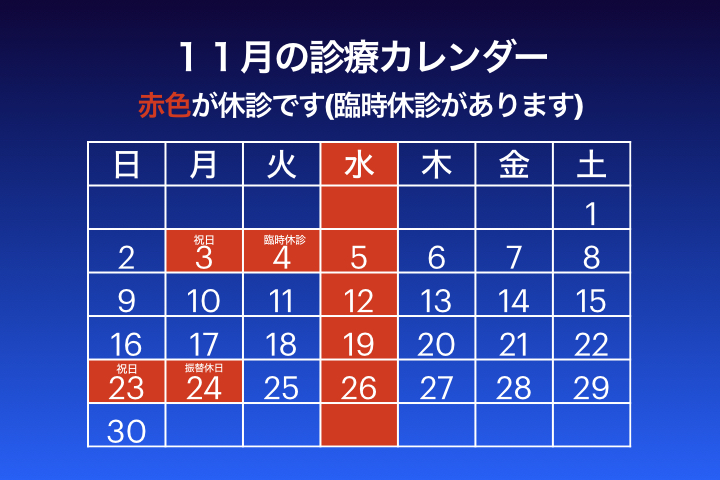 11月4日(火)は臨時休診です。